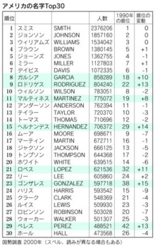 「マック」の由来は? 米国版「名字の謎」 http://www.nikkei.com/article/DGXBZO45724730U2A900C1000000/ 表1は米国で10年に一度、実施されている最新の国勢調査(2000年)で 名字のトップ30位をまとめたものである。 最も多い名字はスミス(約238万人)。…