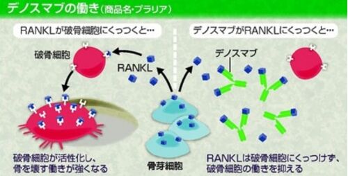 骨粗しょう症…新薬で選択肢に幅 http://www.yomidr.yomiuri.co.jp/page.jsp?id=86167 ◆服用 月1回のタイプ / 「破骨細胞」抑える抗体薬 骨の中では、古い骨を壊す「破骨細胞」と、 新しい骨を作る「骨芽こつが細胞」がバランスよく働くことで、強度を保っ…